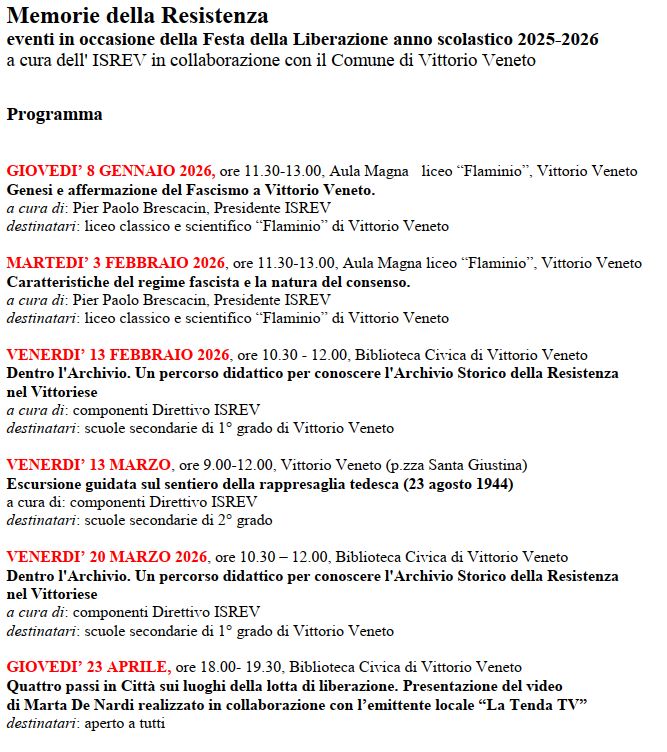 in collaborazione con l'Assessorato alle Politiche Scolastiche del Comune di Vittorio Veneto in occasione della ricorrenza della
